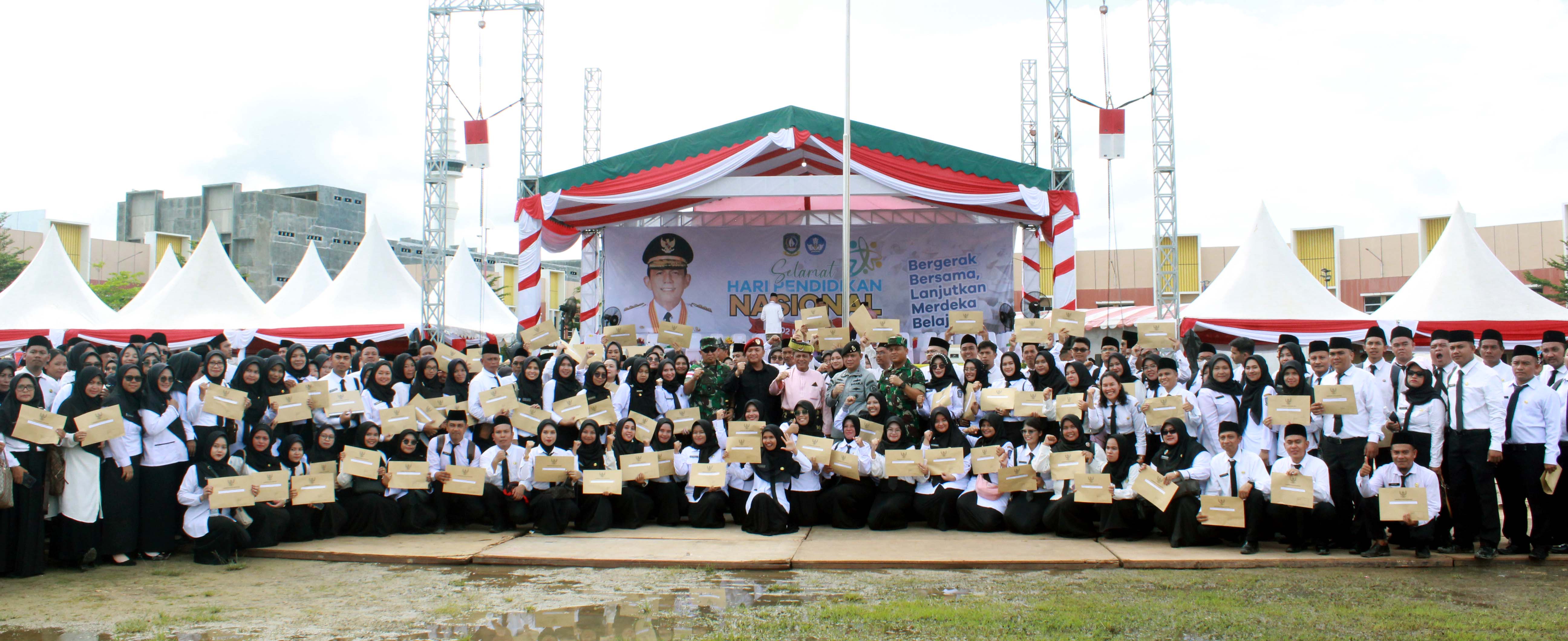 Andi Agung juga menyampaikan sejalan dengan peringatan Hardiknas kali ini, telah diserahkan penyerahan secara simbolis SK PPPK kepada perwakilan guru SMAN/SMK/SLB dan juga SK kepada tenaga kesehatan. Dimana ada 665 tenaga pendidik yang menerima SK dan juga 20 SK bagi tenaga kesehatan.