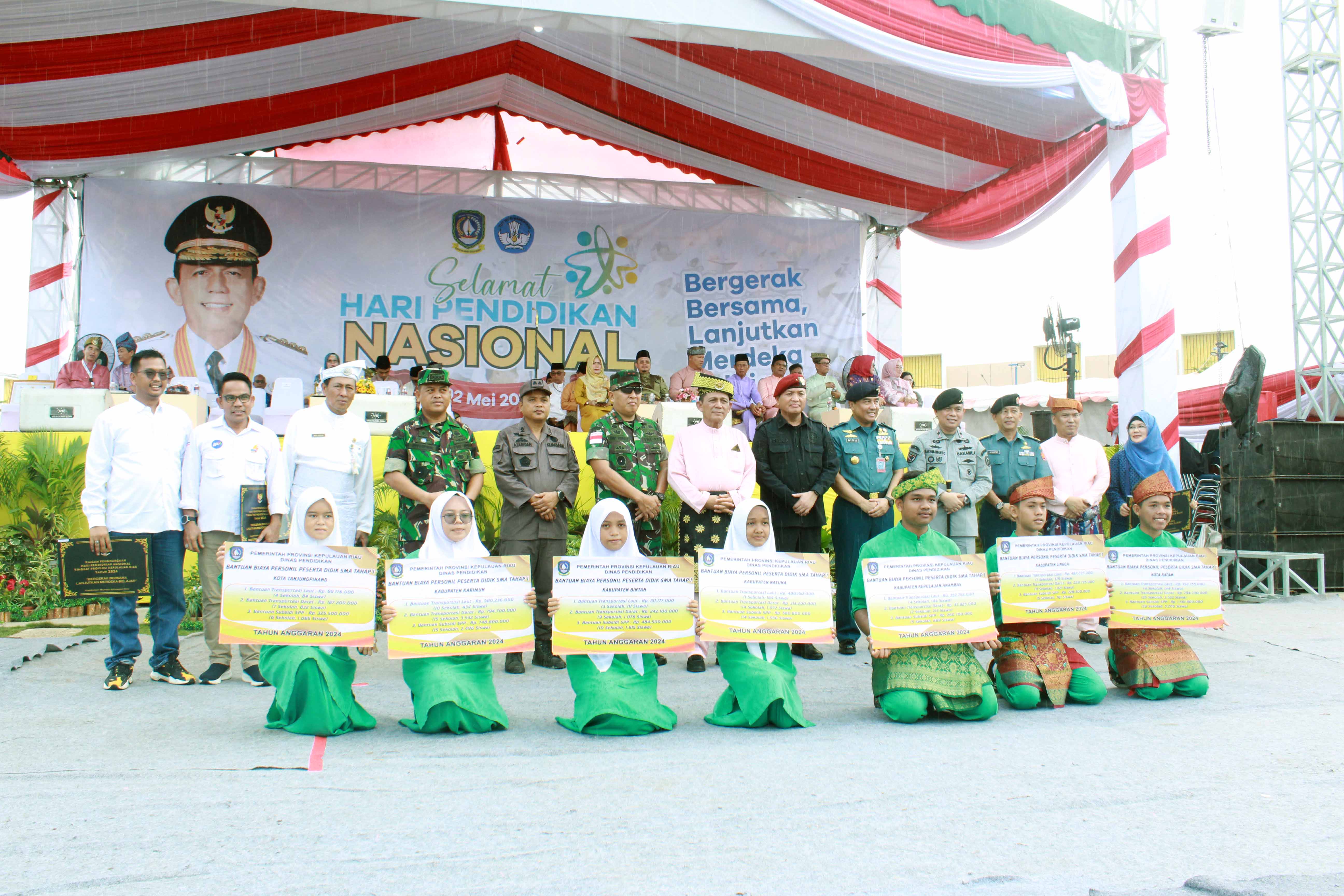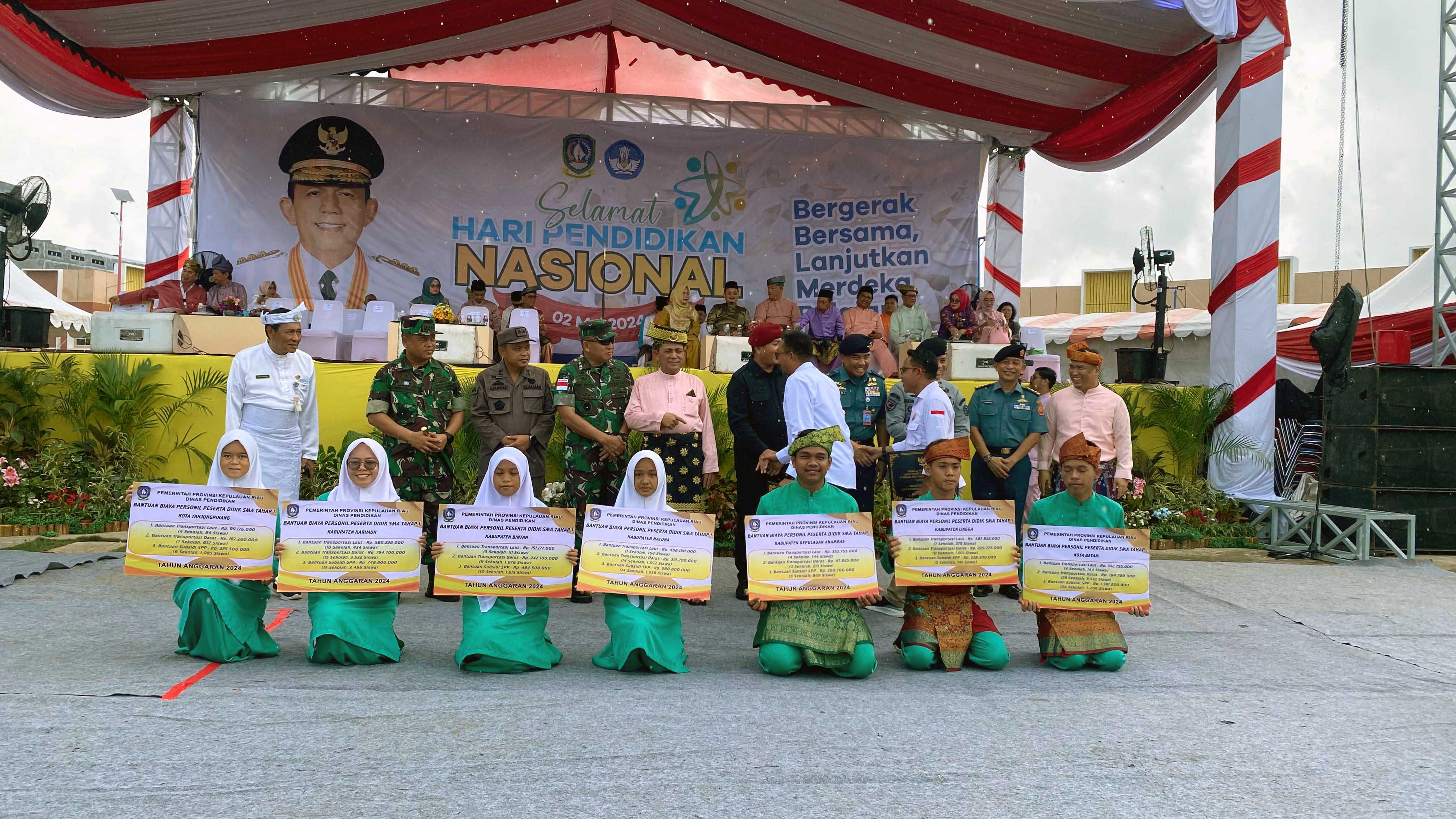 KEPRI (DISDIK) - Gubernur Kepulauan Riau Ansar Ahmad memimpin langsung Upacara Peringatan Hari Pendidikan Nasional (Hardiknas) Tingkat Provinsi Kepulauan Riau Tahun 2024, bertempat di Lapangan Cipta Grand City Sagulung, Kota Batam, Kamis (2/5).