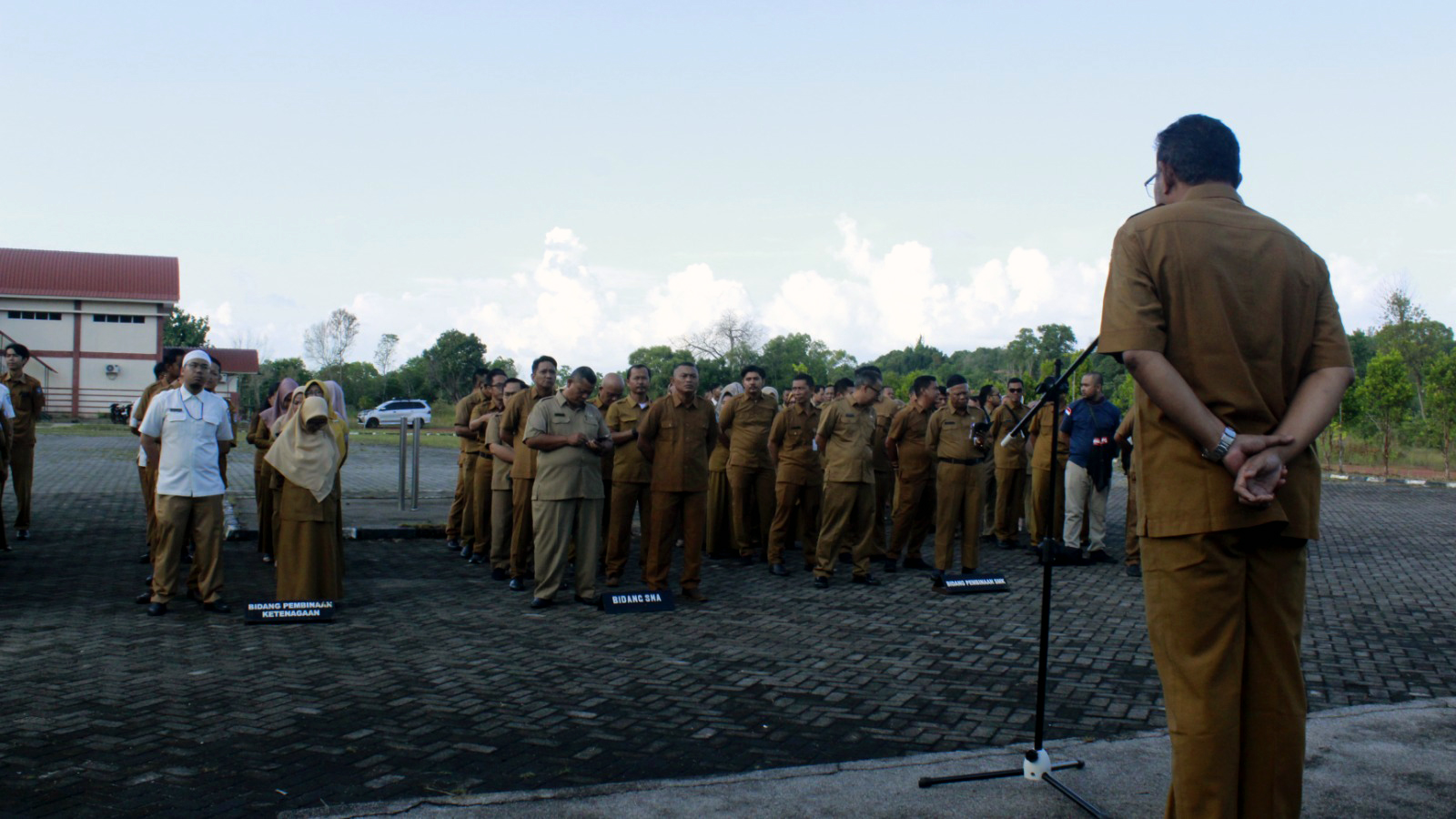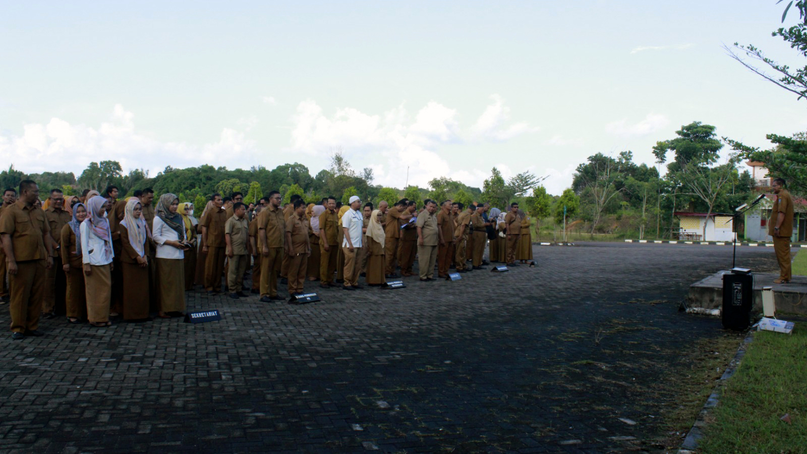Bertindak sebagai Pemimpin Apel dalam apel rutin Senin pagi kali ini adalah, Plahul Chair, S.E, pembawa acara , Dessy Indriani dan pembaca Do'a, Indra Gunawan (tim).