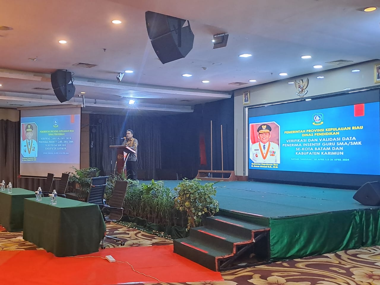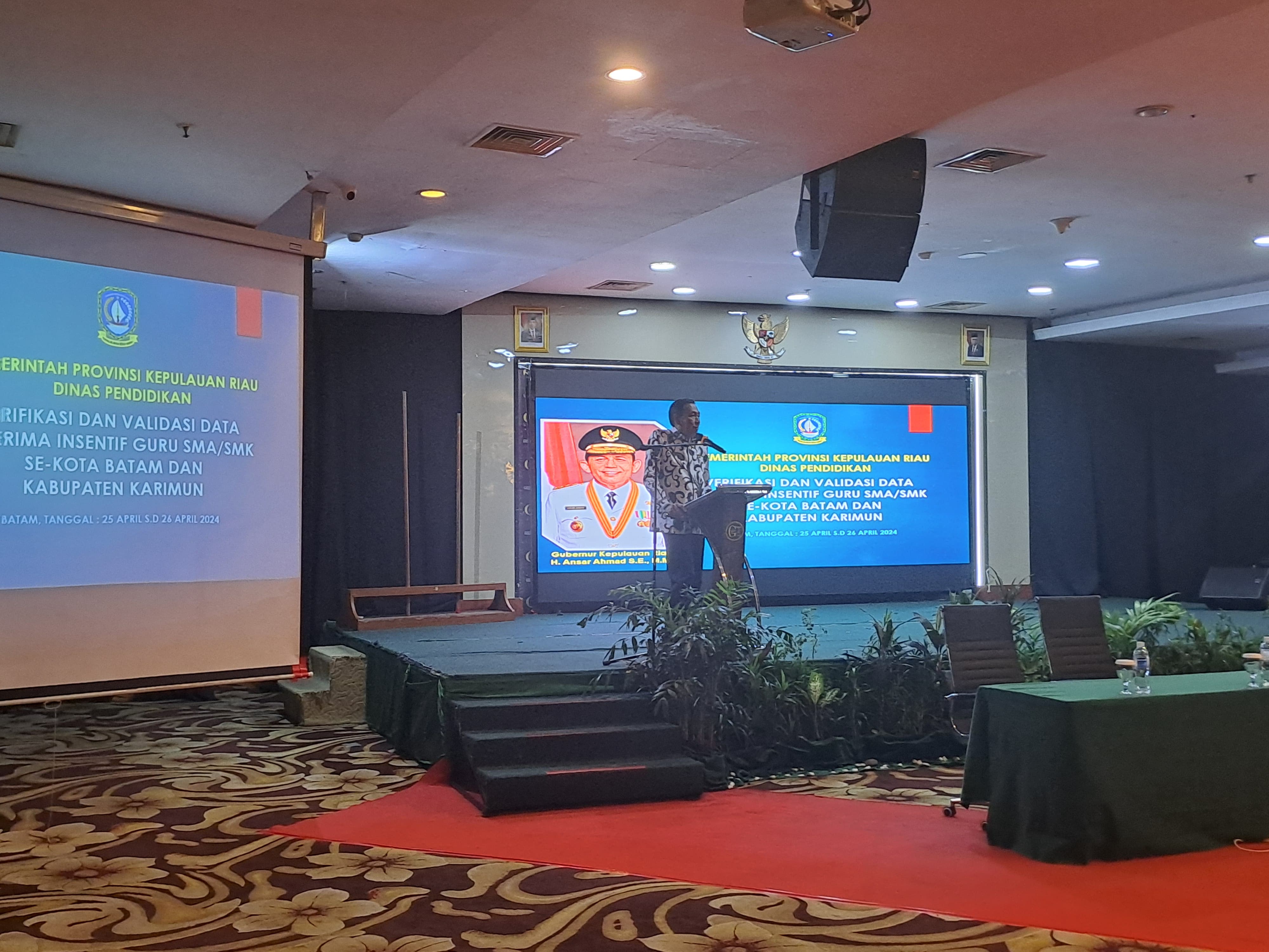 KEPRI (DISDIK)- Dinas Pendidikan Provinsi Kepri laksanakannya kegiatan Verifikasi dan Validasi Data Penerima Insentif Guru SMA/SMK Swasta se-Kota Batam dan Kabupaten Karimun Kamis sd Jumat 25 sd 26 April 2024 Golden View Hotel, Bengkong Laut, Kota Batam.