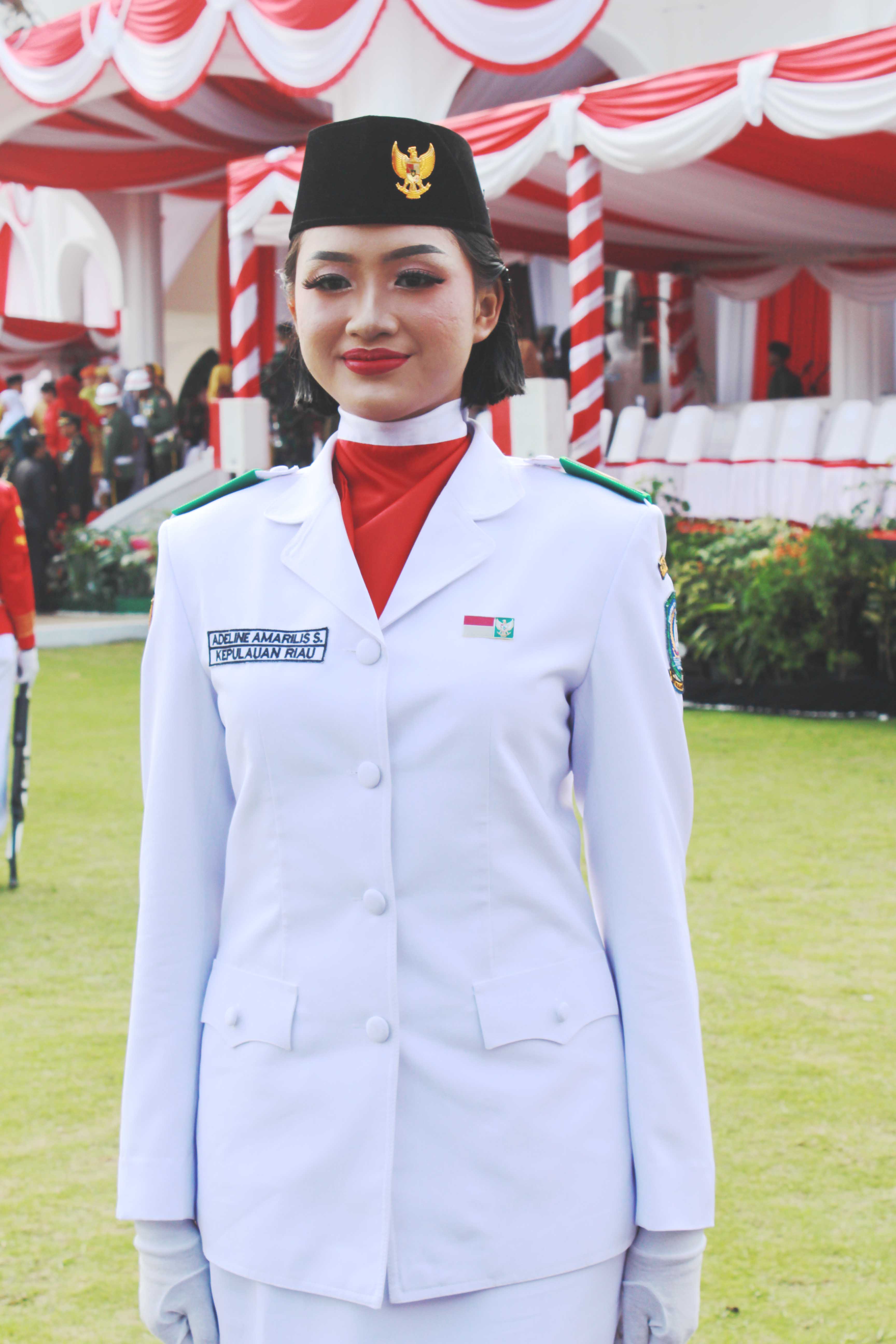 Berdasarkan informasi yang diperoleh pada Sabtu (17/8/2024), pembawa baki Paskibraka Kepri 2024 adalah Adeline Amarilis Sumampouw.
