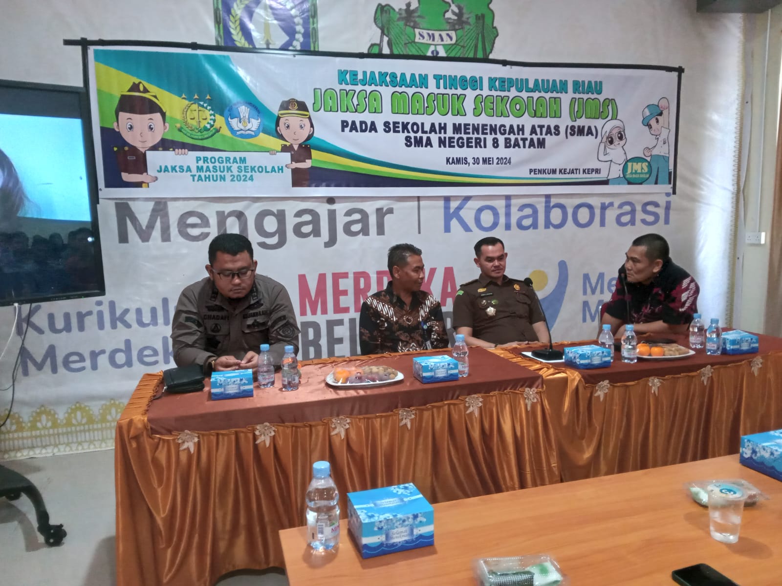 Mendampingi Kejaksaan Tinggi Kepulauan Riau, melaksanakan Program Jaksa Masuk Sekolah (JMS), rombongan kali ini berkunjung ke SMAN 20 dan SMAN 8 Batam, Kamis 30/5/2024.