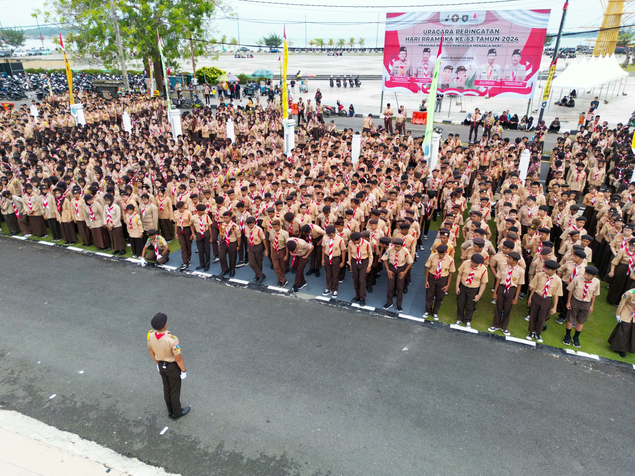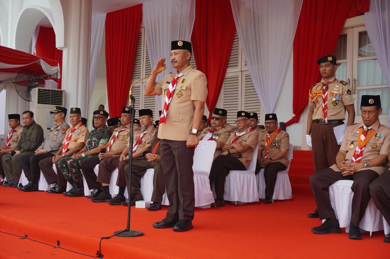 Ketua Kwartir Daerah (Kwarda) Gerakan Pramuka Provinsi Kepulauan Riau, Adi Prihantara, memimpin upacara peringatan Hari Pramuka ke-63 yang diadakan di halaman Gedung Daerah, Tanjungpinang, pada Jumat (16/8).