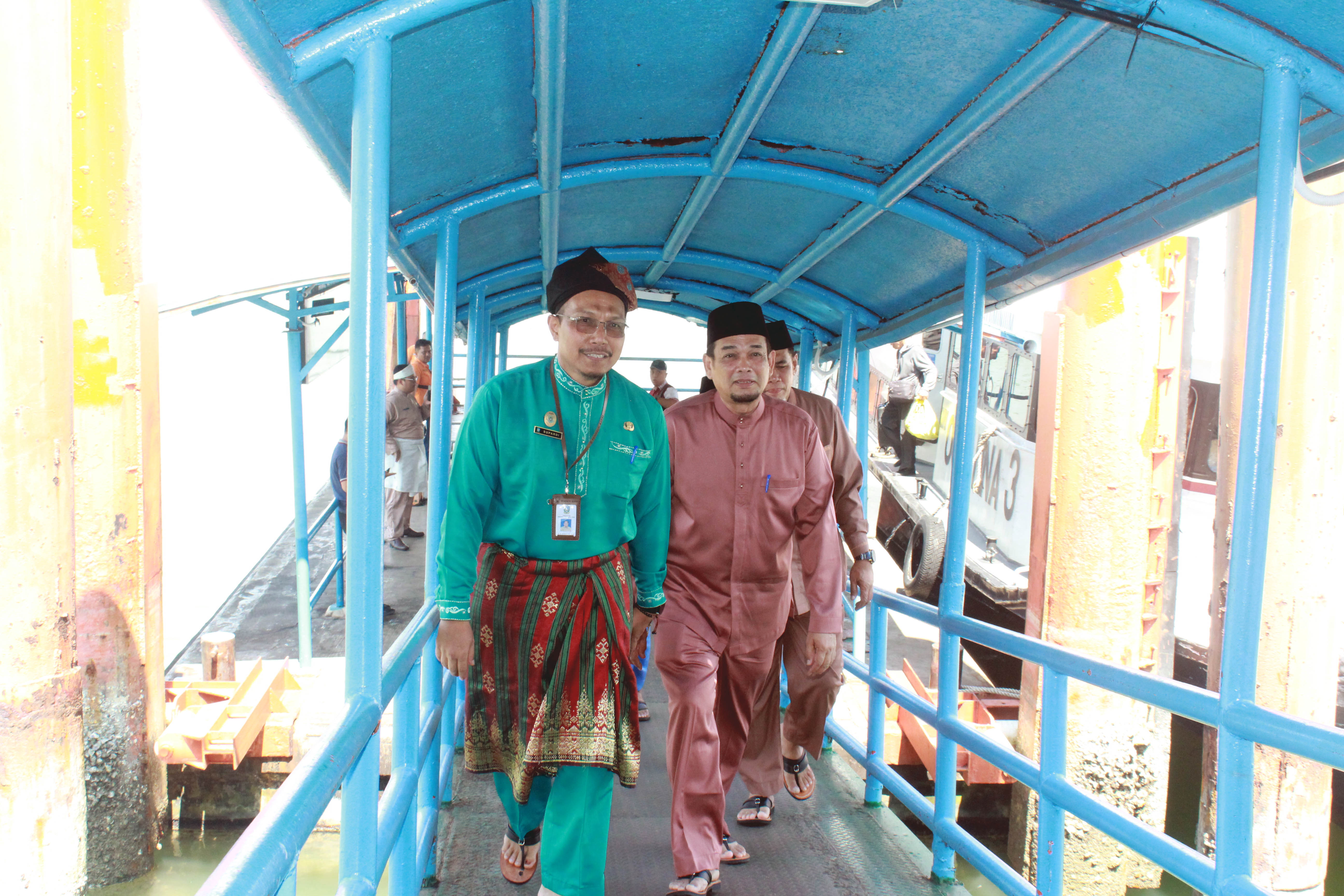 Setibanya di dermaga Pelabuhan Sri Bintan Pura, penyambutan ditandai dengan pemasangan tanjak secara simbolis oleh Kadisdik Kepri kepada perwakilan kafilah. Turut hadir mendampingi dalam kegiatan ini, Sekretaris Dinas Pendidikan Kepri, Dr. H. Supardi, S. Pd., M. Si. Kepala BKD Provinsi Kepri sebagi kordinator LO STQH Yeny Trisia Isabella, S.Sos., M.M. DR. H. TS Arif Fadillah, S.Sos, M.Si, dan Kepala Sekolah SMA/SMK Se-Kota Tanjungpinang