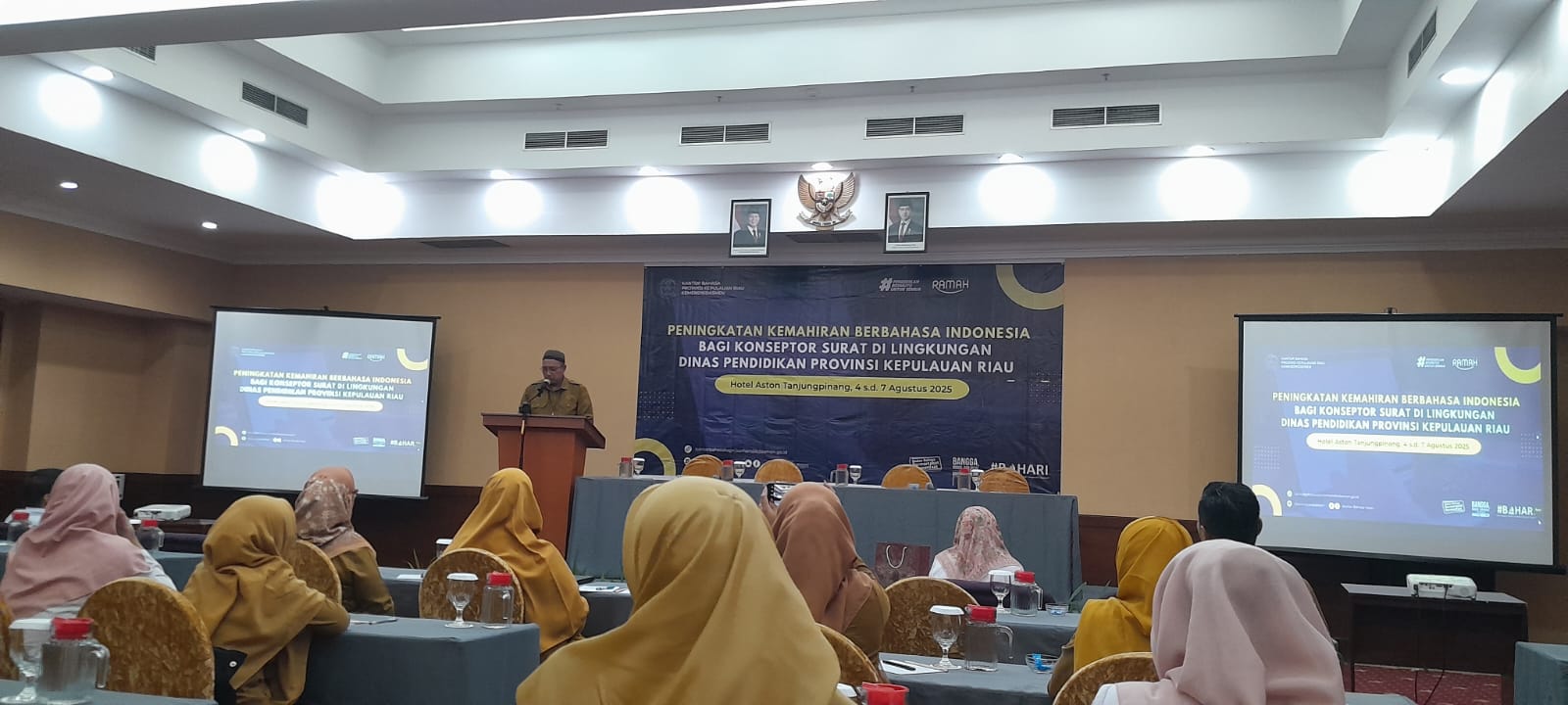 KEPRI (DISDIK) — Dalam upaya meningkatkan kualitas tata naskah dinas dan penggunaan bahasa Indonesia yang baik di lingkungan pemerintahan, Kantor Bahasa Provinsi Kepri menggelar kegiatan Peningkatan Kemahiran Berbahasa Indonesia bagi Konseptor Surat, yang dimulai hari ini, Senin (4/8), di Hotel Aston, Tanjungpinang.