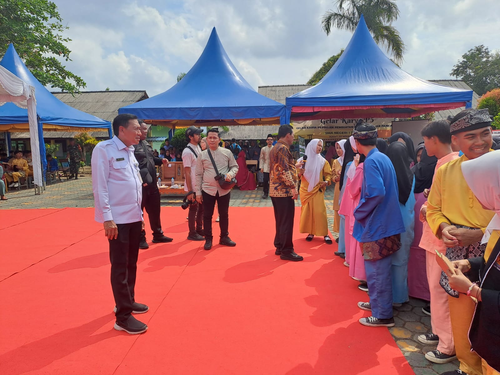 KEPRI - Gubernur Kepulauan Riau, Ansar Ahmad, dan Ketua TP-PKK Kepri, Dewi Kumalasari Ansar, di dampingk Kepala Dinas Pendidikan Provinsi Kepri Andi Agung, berkunjung dan bersilaturahmi dengan keluarga besar SMAN 1 Toapaya dan SMKN 1 Gunung Kijang yang berlangsung di SMAN 1 Toapaya, Bintan, pada Jumat (03/11). Selama kunjungan tersebut, Gubernur Ansar meresmikan pengoperasian keran air minum sehat dan meluncurkan bazaar kewirausahaan.